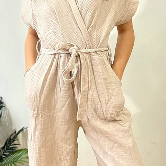Inspirez-vous dans cette combinaison beige en 100% coton, adaptée à toutes les morphologies. Son design sans ceinture mettra en valeur votre silhouette H. Utilisez-la seule ou avec une veste pour un look polyvalent. Idéale pour les poitrines développées.