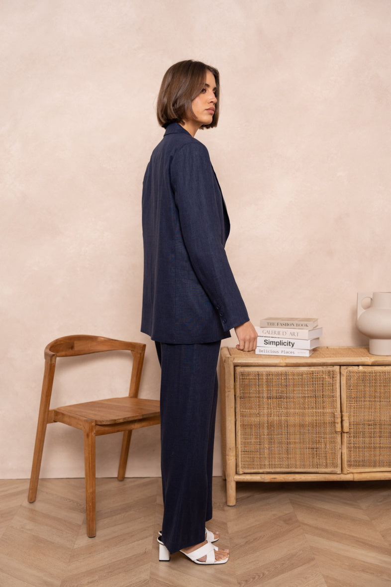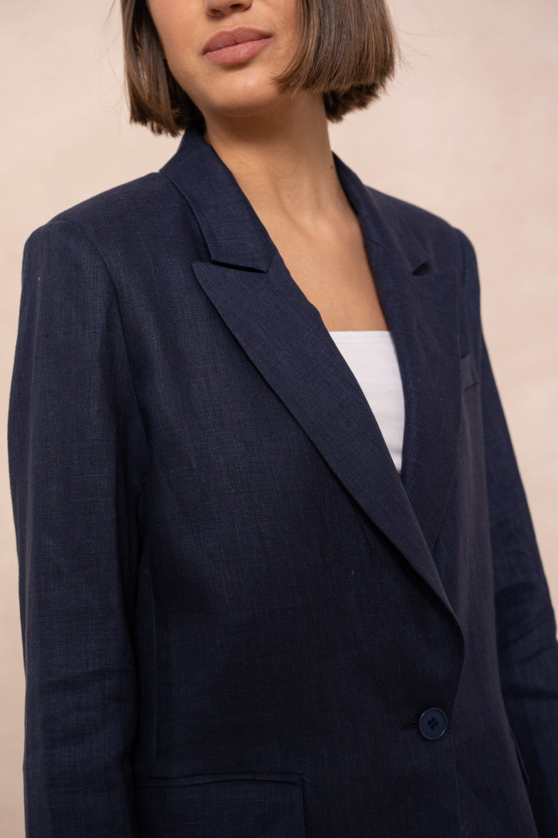 Découvrez notre veste en lin de qualité supérieure! Avec son design oversize, son col à revers et ses poches pratiques, elle offre une allure élégante et moderne. Les manches longues apportent une finition soignée. Associez-la avec notre pantalon assorti pour un look raffiné et naturel. Fabriqué en Chine avec 100% de lin.